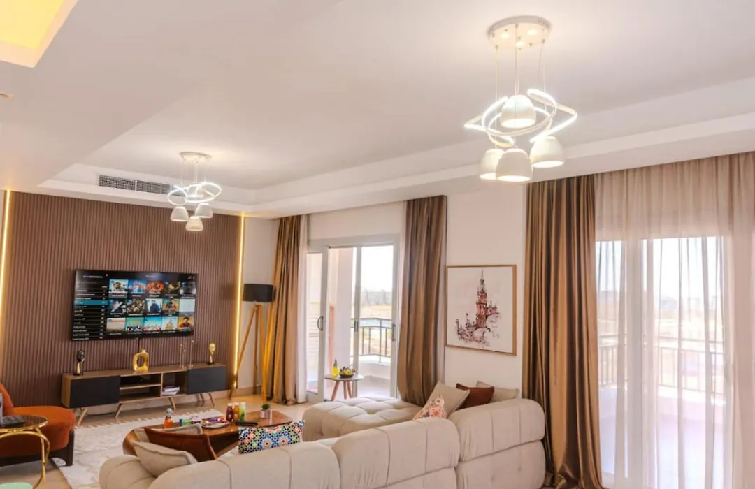 El apartamento está ubicado en el distrito Nuevo Cairo, al alcance del KidZania Cairo.